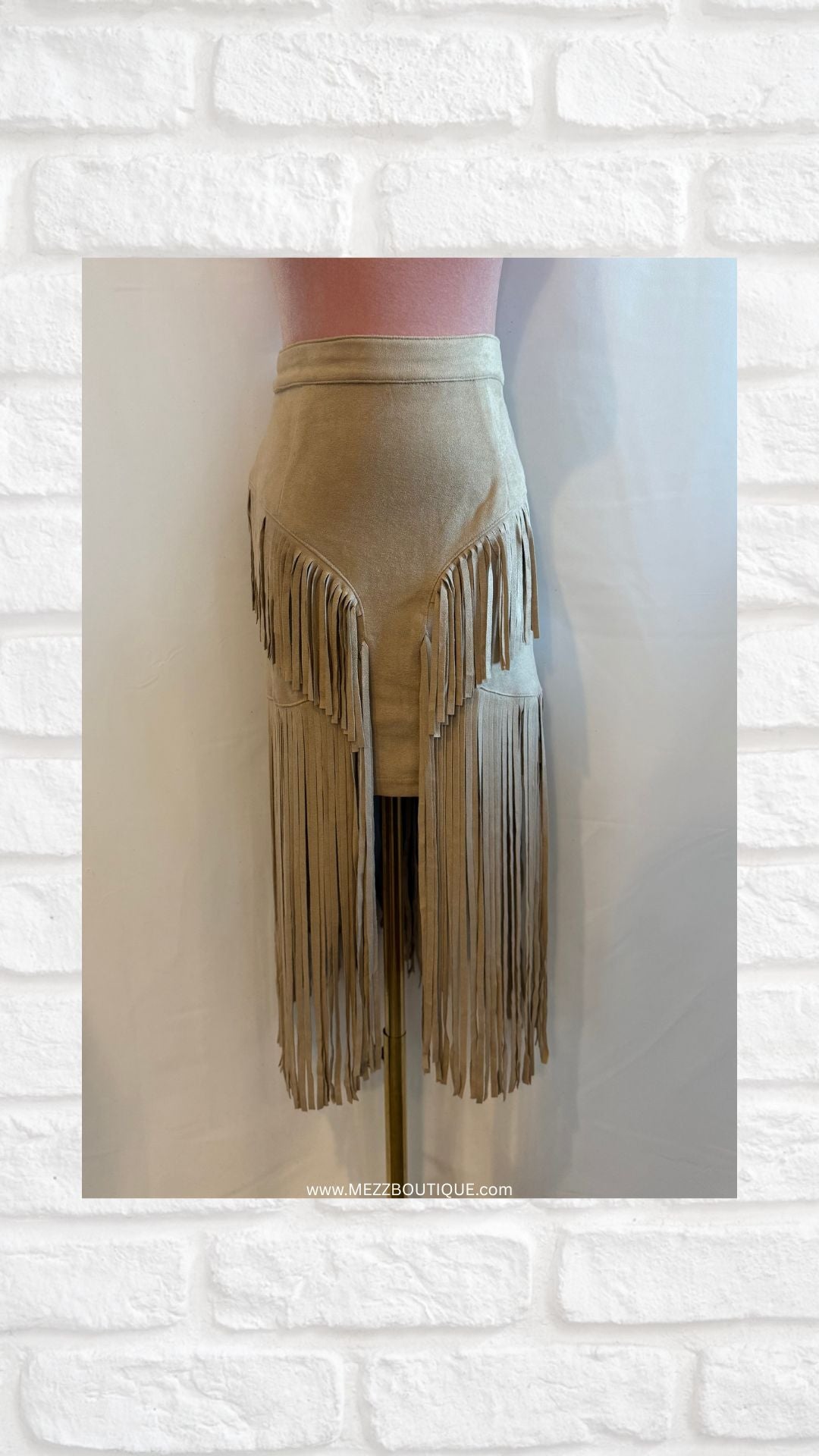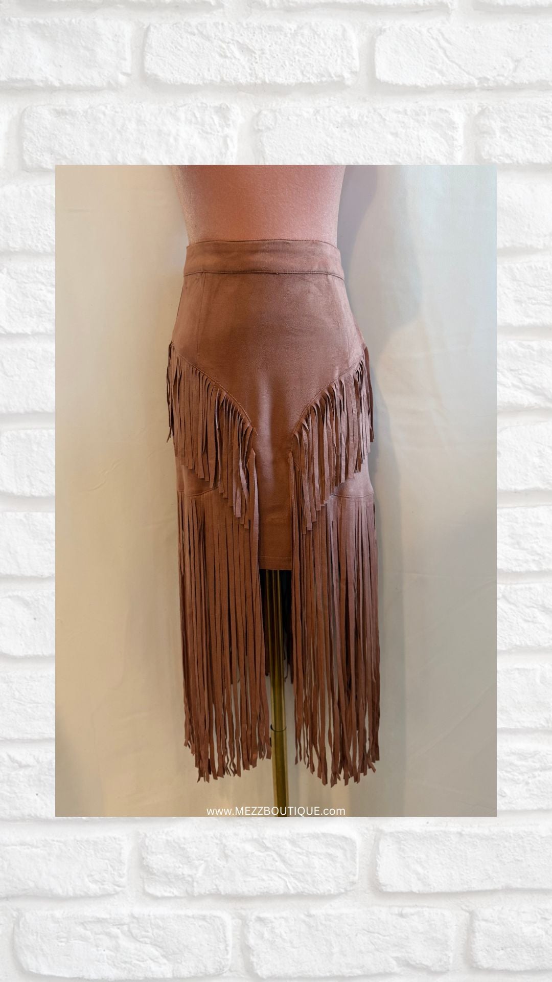 - Suede fringe midi skirt