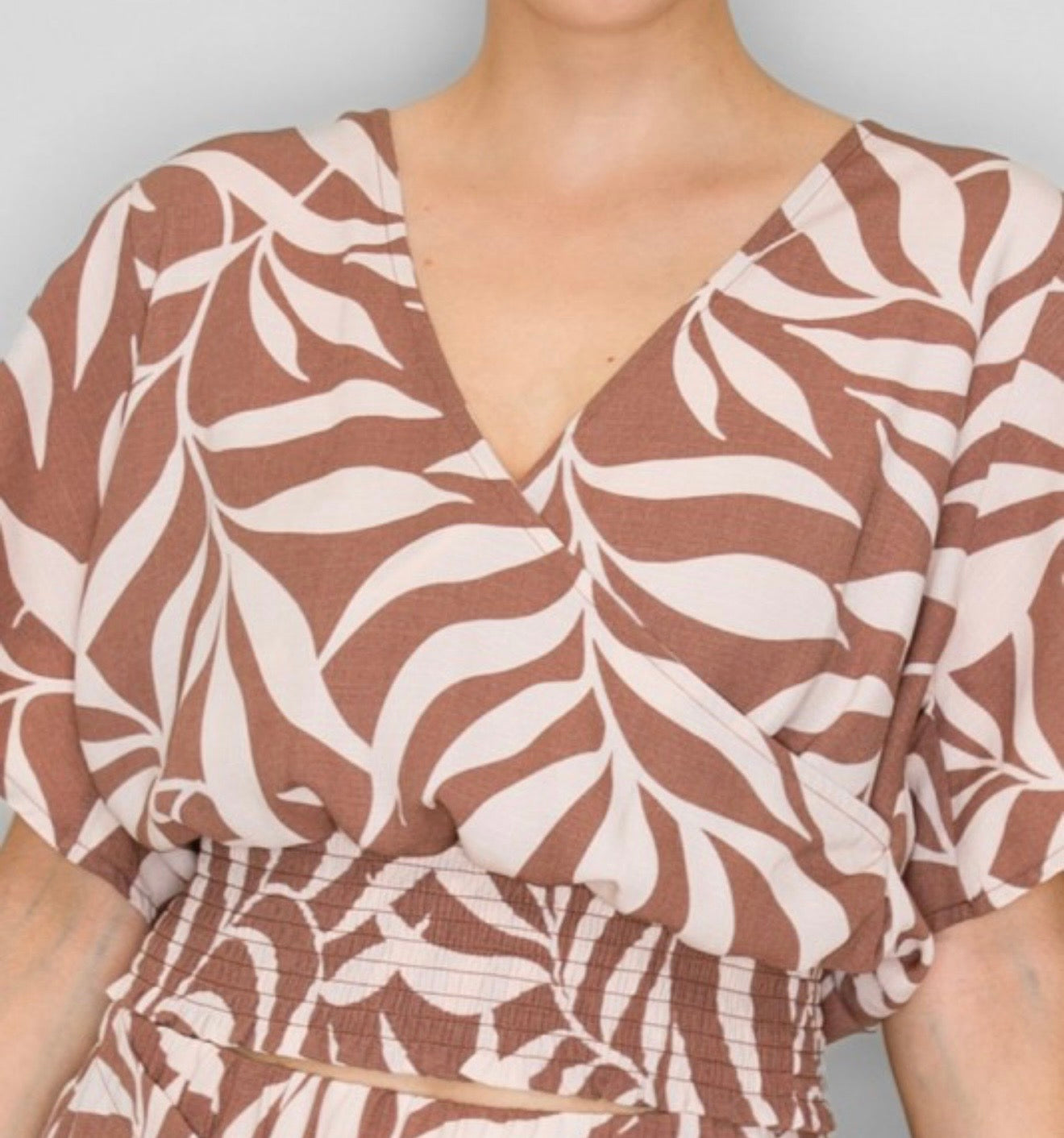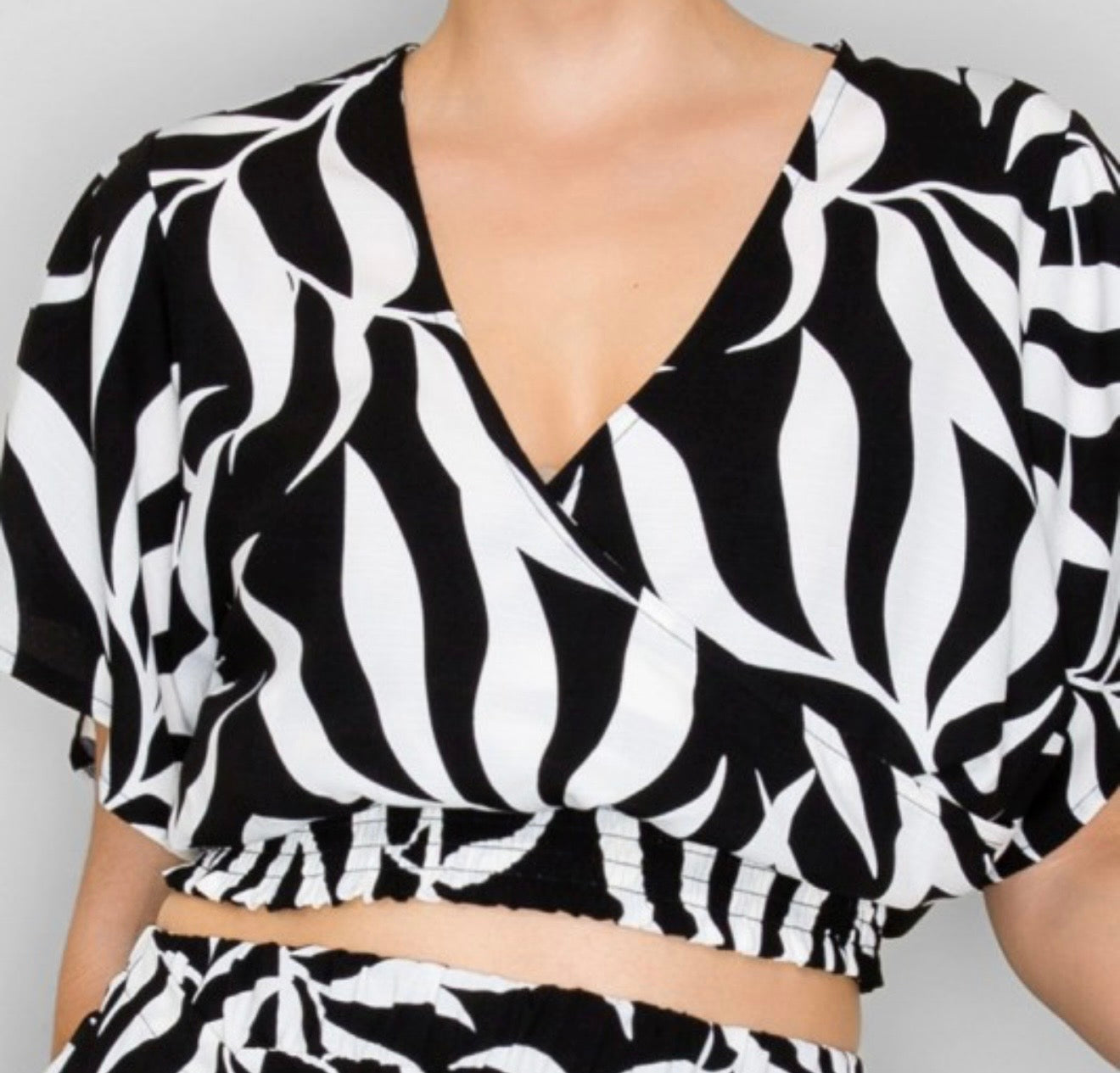 - Cropped top with V-neckline